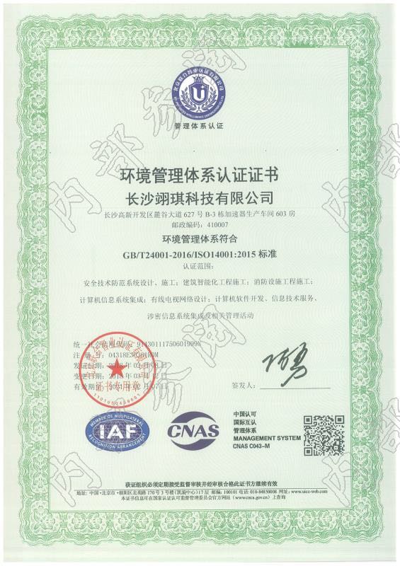 環(huán)境管理體系認(rèn)證證書