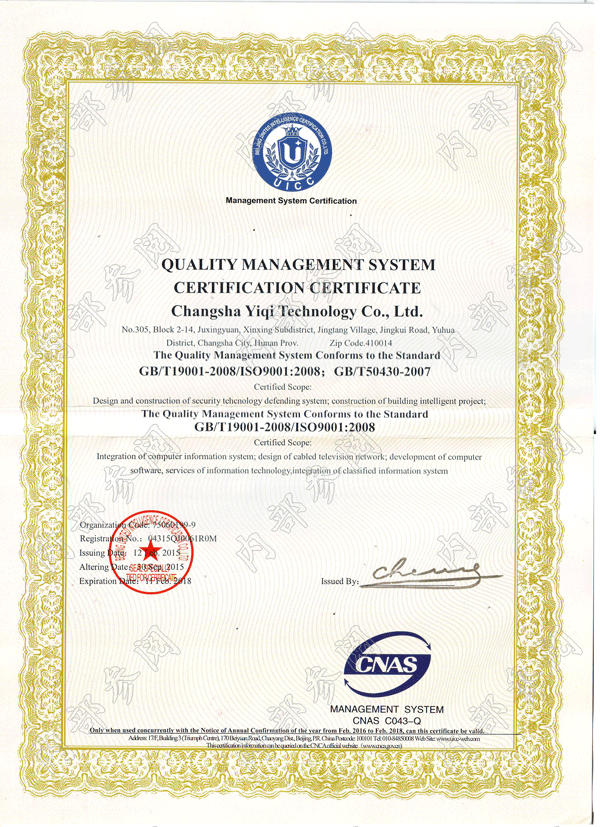 2015質(zhì)量體系證書英文版